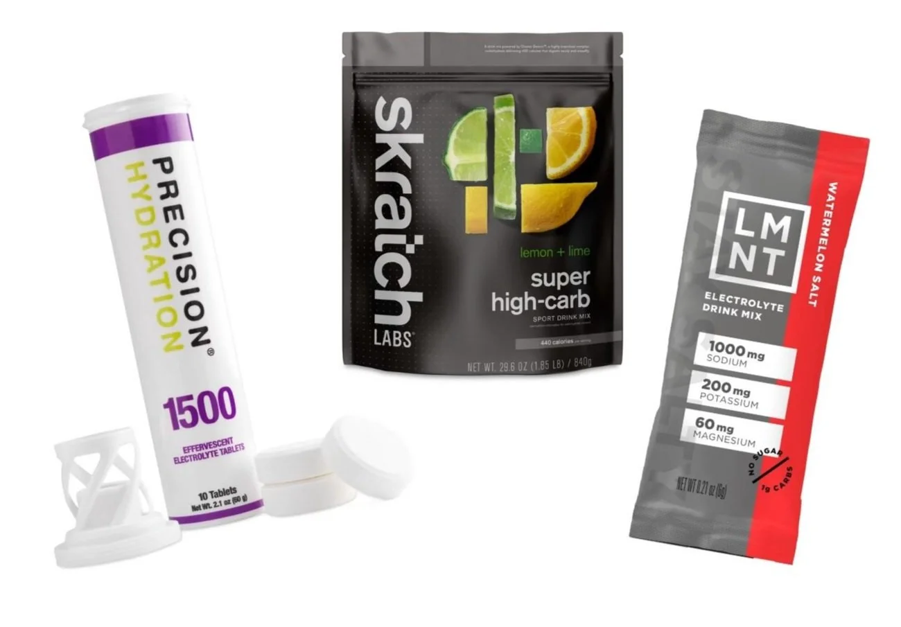 Water with hydration mix on the other hand, absorbs faster than plain water. Hydration mixes like Skratch and Precision Hydration are considered isotonic because they have the same concentration of dissolved particles as blood, and therefore absorb faster than water. Products like Gatorade contain more sugar, so absorb slower like a high carb mix would. (Hydration mixes also contain some sugar as the glucose transporters in the gut help facilitate sodium and fluid absorption)